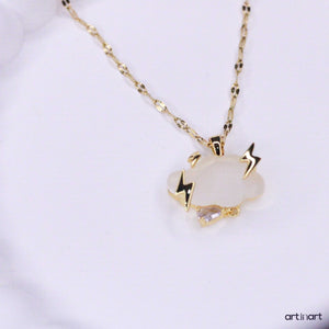 Kolye Ucu: Mat yüzeyli bulut detayı ve parlak yıldırım sembolleri altın renklidir.