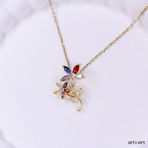 Renkli Taşlarla Tasarlanmış Altın Çelik Çiçek Kolye