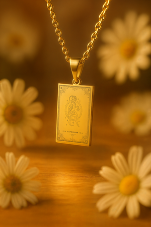 Lazer kazıma yöntemiyle özenle işlenen desen, hem şıklık hem de anlam arayanlar için eşsiz bir seçenek sunar. Görsel diliyle tarot estetiğini yansıtan kolye, modern stilinize spiritüel bir dokunuş katar.