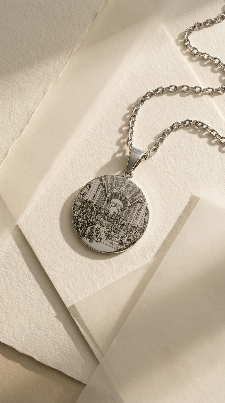 1 adet “The School of Athens ” 316L çelik kolye kolye