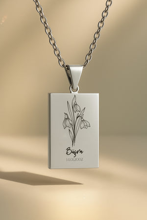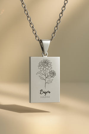 Doğum Ayı Çiçeği Dikdörtgen | 316L Çelik Kolye
