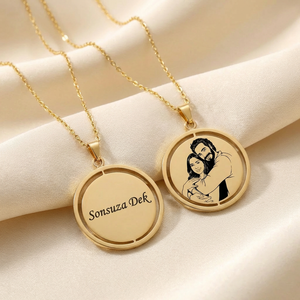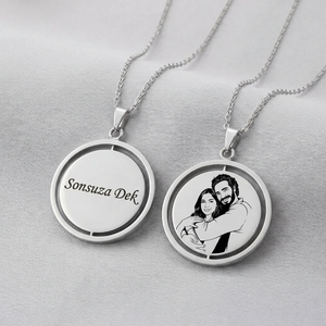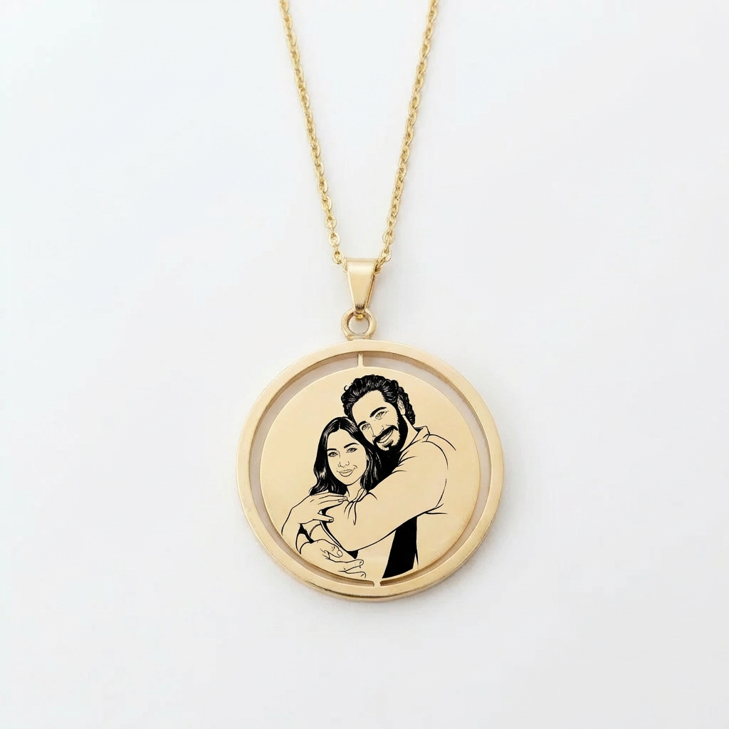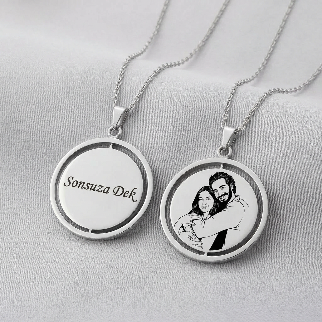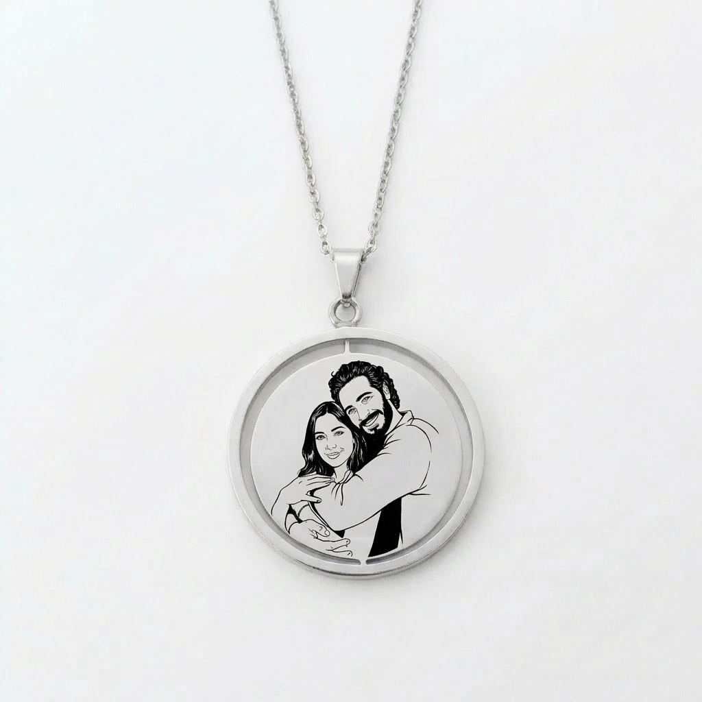 Home Kişiye Özel Koleksiyonu Fotoğraftan Çizim Yuvarlak Dönen | 316L Çelik Kişiye Özel Kolye