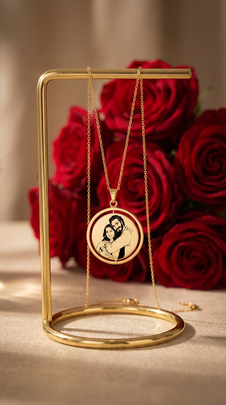 Fotoğraftan Çizim Yuvarlak Dönen | 316L Çelik Kişiye Özel Kolye